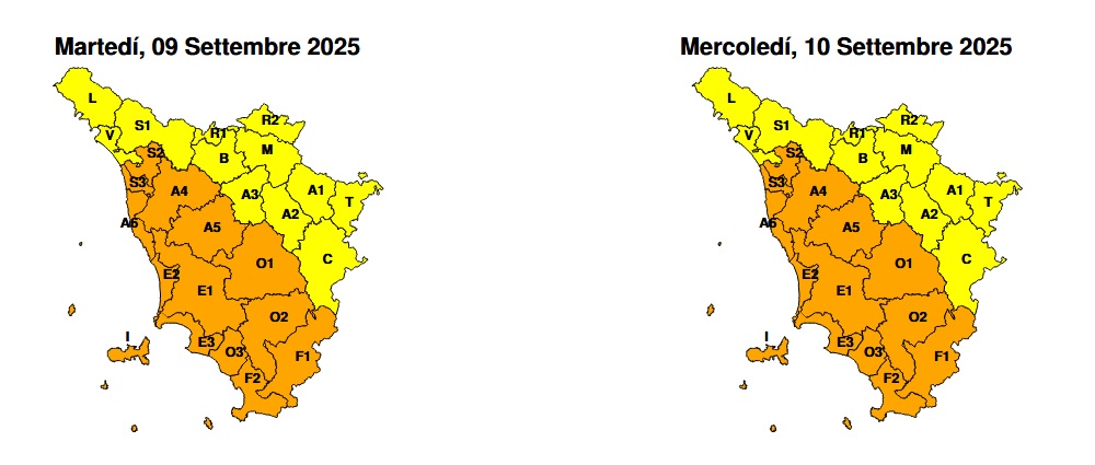 La protezione civile del Comune di Campiglia Marittima avvisa la popolazione che la regione toscana ha emesso un'allerta meteo codice ARANCIONE per TEMPORALI FORTI e RISCHIO IDROGEOLOGICO IDRAULICO del RETICOLO MINORE dalle ore 17.00 Martedì 09 Settembre 2025 alle ore 13.00 Mercoledí 10 Settembre 2025.